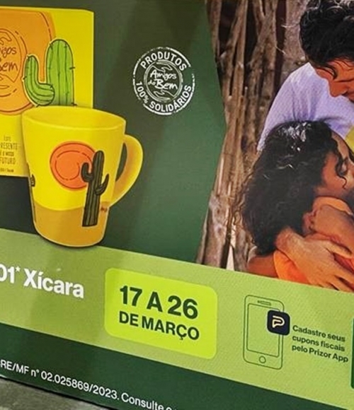Consumidor ganha uma xícara personalizada ao atingir limite de compras no Shopping