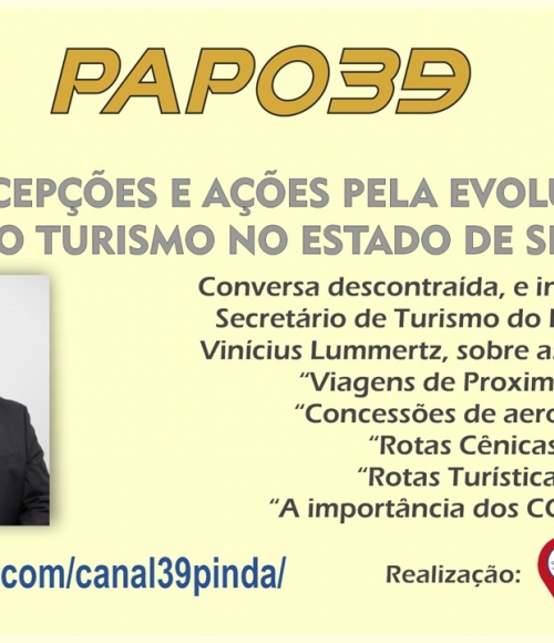 PAPO39: Secretário Estadual de Turismo em live exclusiva nesta sexta-feira no Canal39